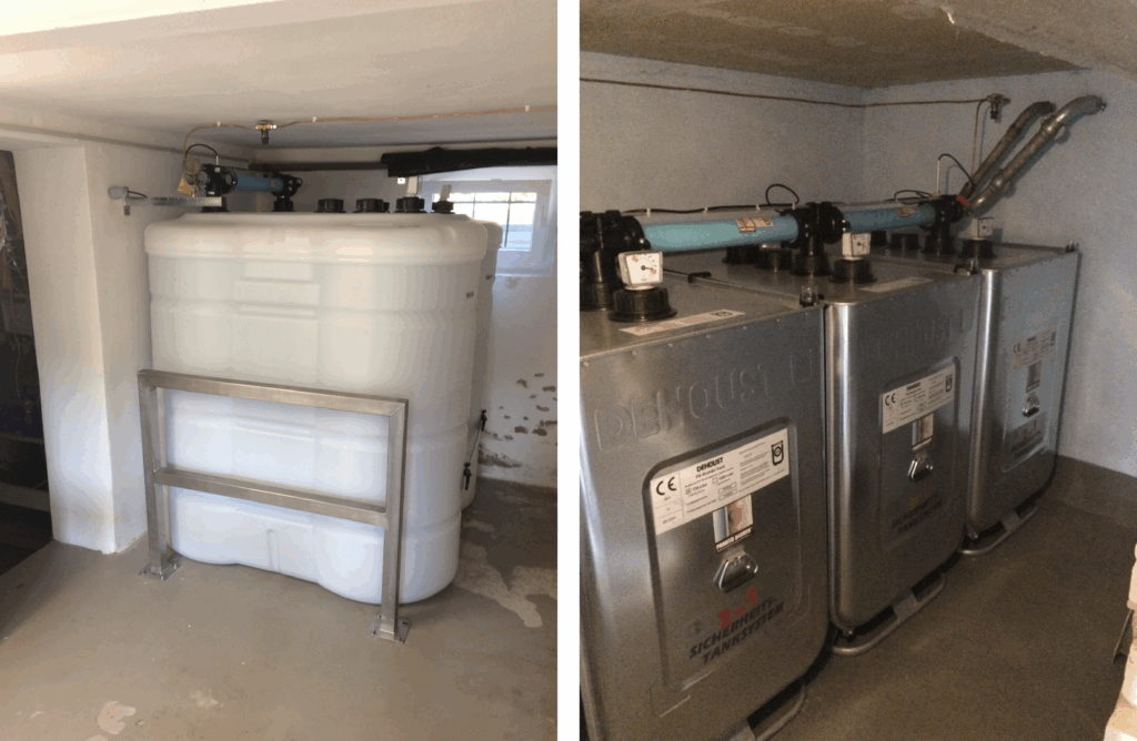 • standortgefertigte Haase – Kunststofftanks (passt überall hindurch – geht klein durch die Tür und wird groß im Keller! benötigt keine Auffangwanne, Tank ist doppelwandig aufgebaut)